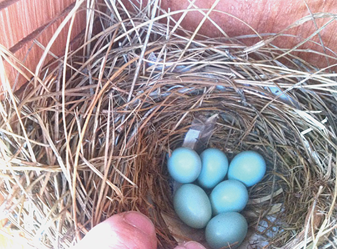 This year, Bruce reports four bluebird nests occupied his boxes which fledged a total of 12 bluebirds. Other boxes produced 30 wrens and four flycatchers. Compare that to last year when Bruce found only two bluebird nests along with one wren and one flycatcher nest!