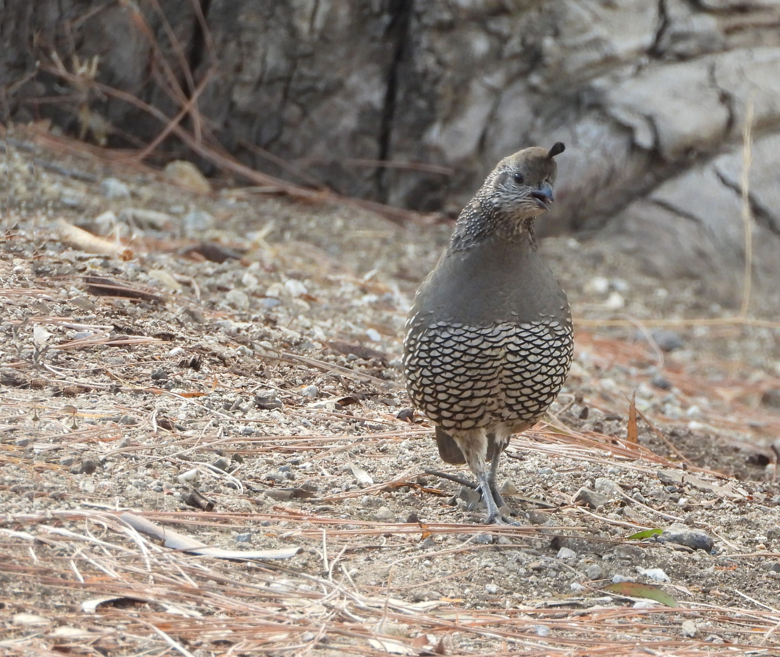 Young birds adapt behaviorally to tolerate the nearby presence of people along trails and roads, but only if there’s something in it for them! Quail can usually go without water, deriving their liquid needs from vegetation and insects. However, during prolonged hot, low-moisture periods, why not take water from one of the water pipes scattered throughout the Park? After all, it’s easier than searching out a natural seep or stream bottom.