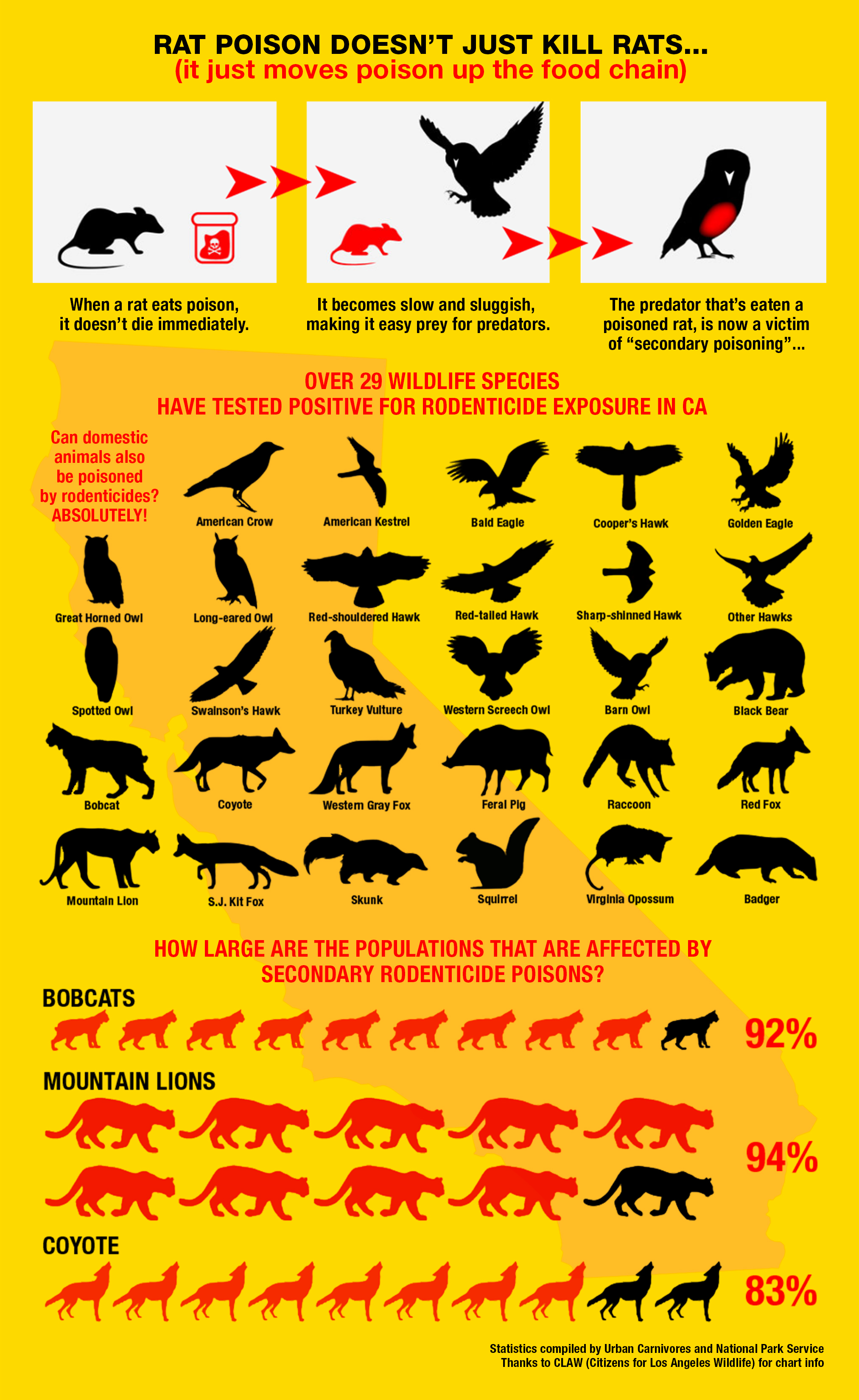 We thank you immensely for your support and for contacting our elected officials — but we still need you to let our elected officials know to ban these deadly RODENTICIDES, because these poisons kills much, much more than rats!