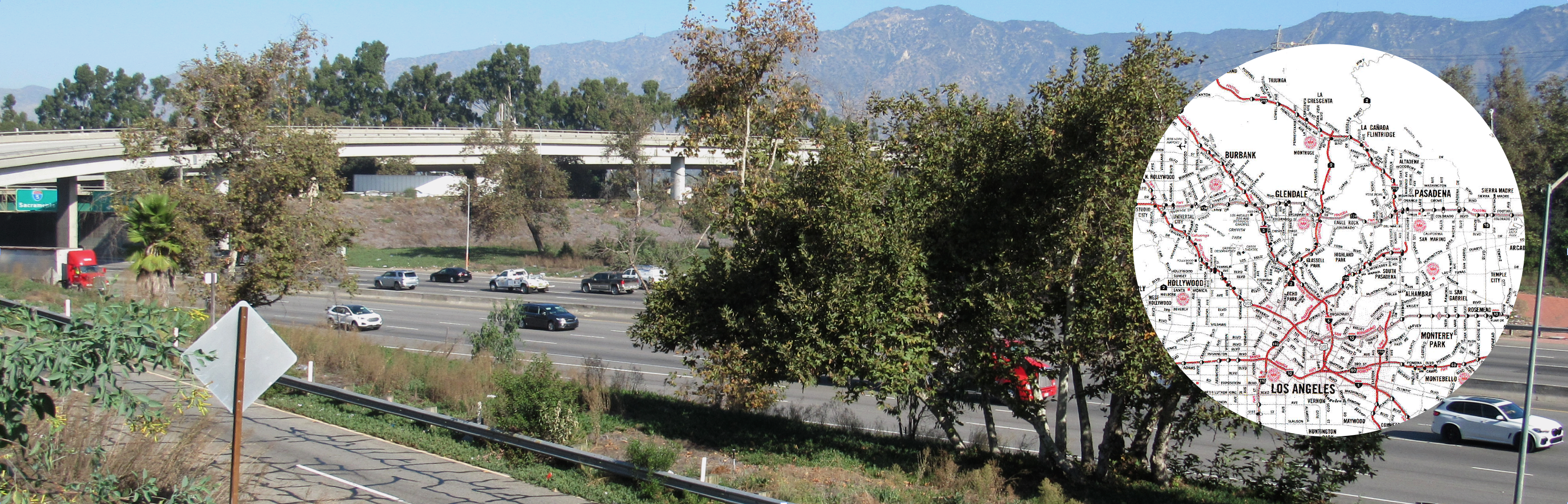 As work progressed well into the 1950s, the new roadway arrived at the northernmost edge of Griffith Park where it proceeded to split the parkland into two sides (the L.A. River also acted as a barrier). Slicing the Park created huge problems as area residents including the Los Feliz Improvement Association, the L.A. Parks Commission, L.A. Mayor Norris Poulson, and Griffith’s son Van (Griffith J. Griffith had died in July, 1919) were vehemently opposed. Earlier, Mayor Poulson had proposed an alternative route to the east of the river – through Glendale. According to Paul Haddad’s book, Freewaytopia, Poulson referred to the alternative route as “dumps, cow pastures, and vacant land” which would be more appropriate to freeway construction. Mike Eberts’ Griffith Park: A Centennial History also discusses the standoff: Recreation and Parks General Manager, George Hjelte had voiced concerns about the route, albeit late in the game. L.A. Councilman Ernest E. Debs then pushed back against his objections stating Hjelte was for the project before he was against it. Hjelte shot back, suggesting the full scope of the project had not been forthcoming at the time he voiced approval in 1947.